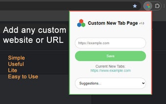 O Custom New Tab Page é uma extensão gratuita para Chrome que permite ao usuário definir qualquer URL como sua nova página de aba. Com uma interface limpa e intuitiva, a configuração é simples, bastando inserir a URL desejada e salvá-la com um clique. Essa ferramenta é ideal para quem busca agilidade no acesso a sites favoritos, seja para trabalho, estudo ou lazer.